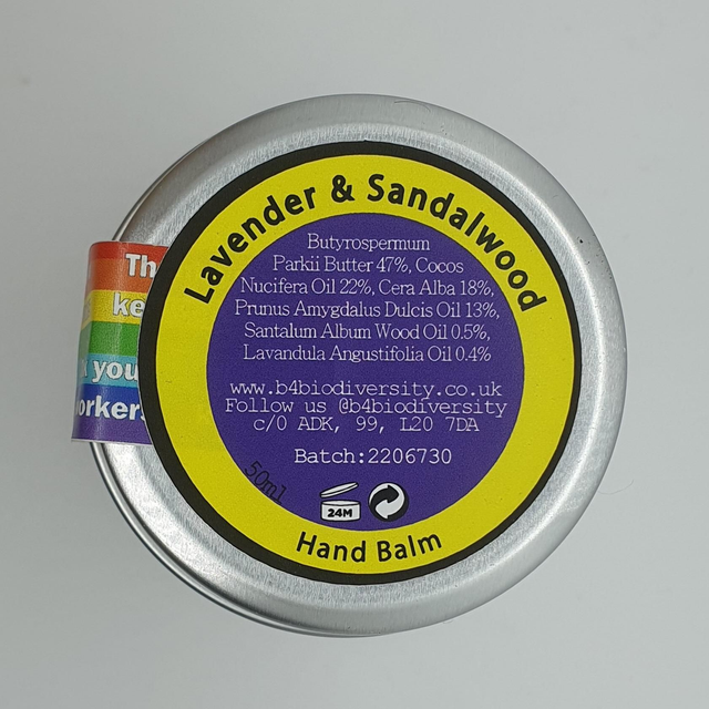 Nourish and pamper your skin with our Lavender & Sandalwood Hand Balm, made with 100% pure beeswax from our Liverpool beehives and other natural ingredients. This soothing balm hydrates and refreshes your skin, leaving behind a calming floral scent from lavender and sandalwood essential oils.