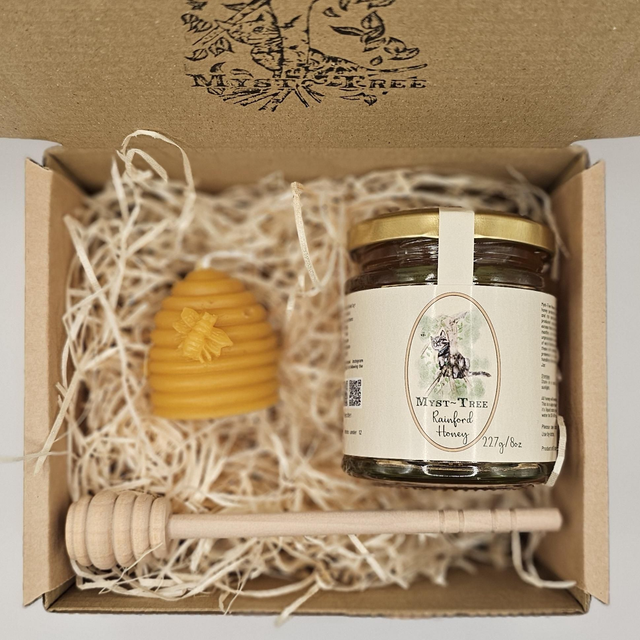 A simple, charming Christmas gift filled with pure Rainford goodness. Each Red Ribbon Box includes a jar of our medium Rainford honey and a full-size wooden honey dipper, packed in wood wool with a festive red ribbon.